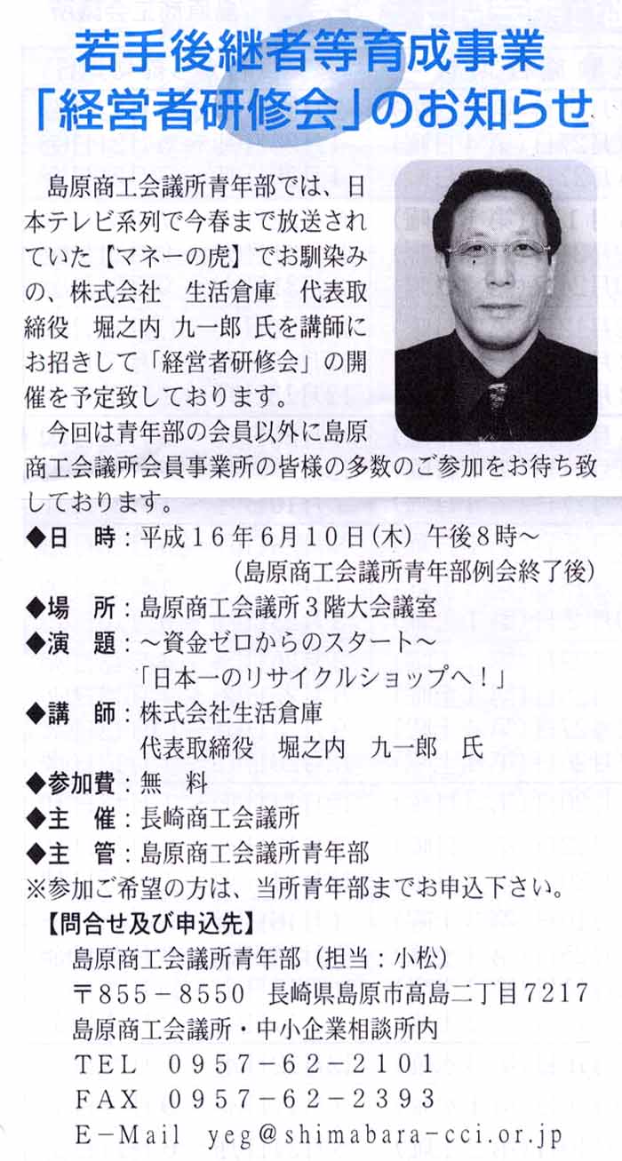 マネーの虎:堀之内九一郎 講演会