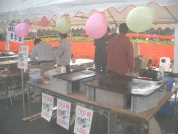| ステージ横の一番イイ場所でした。 有明町商工会青年部のうどん出店の横です。 |