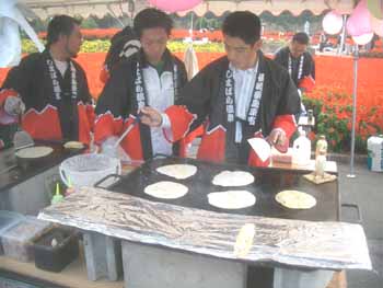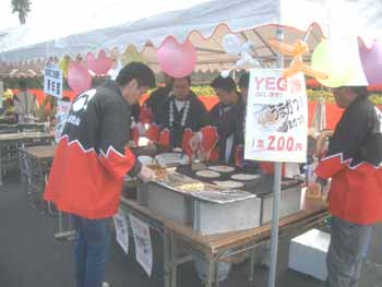 | 不知火まつりの前夜祭で 有明町商工会青年部のメンバーが告知した 「アリアケフェスタ」に「箸巻きお好み焼」で出店しました。 島原商工会議所青年部(YEG)が窓口となり、 島原青年会議所(JC)、商店街連盟、島原市役所、など 企画事業部会メンバーの協力のもと、盛大に行いました。 |